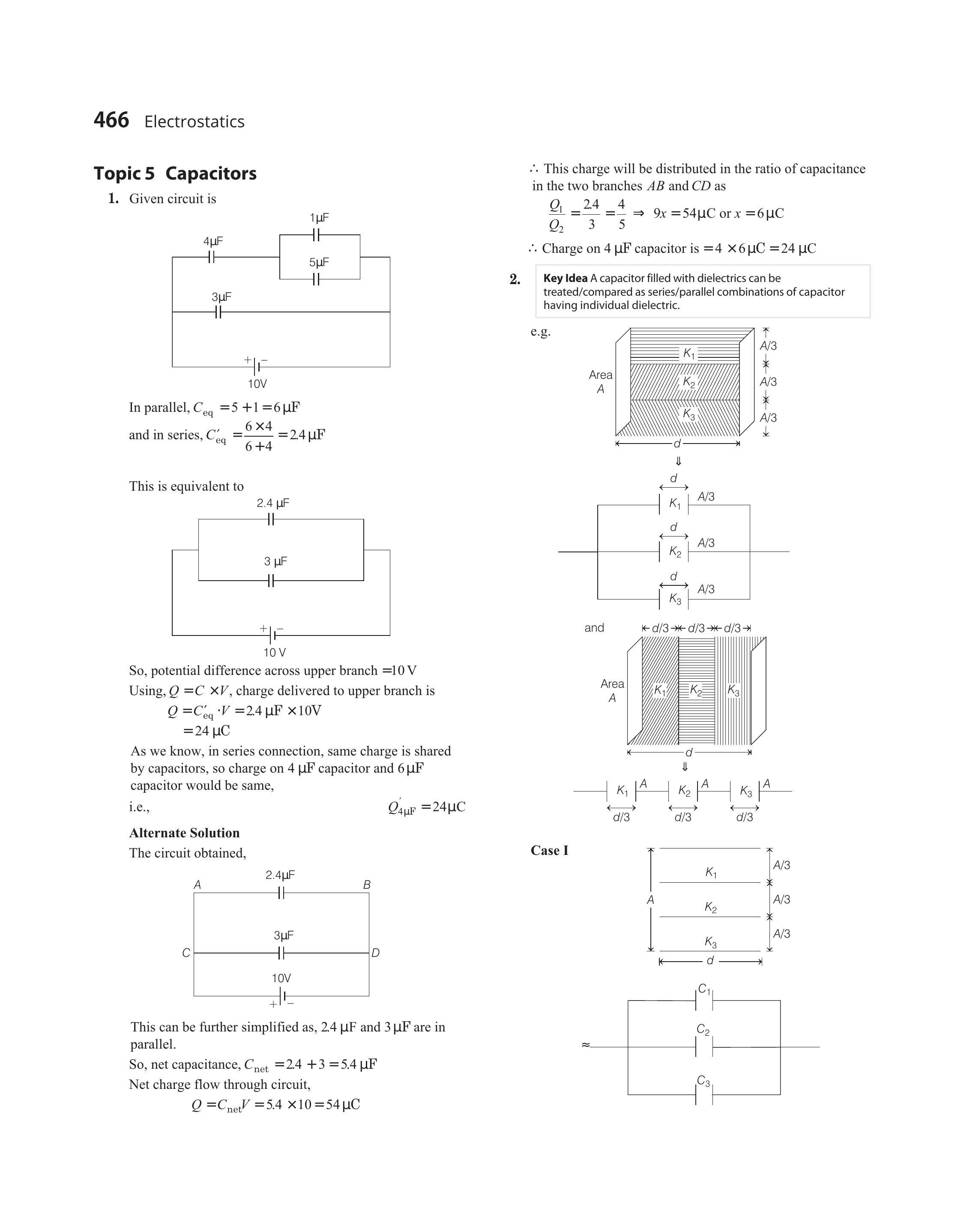 and in series, $C_{\mathrm{eq}}^{\prime}=\frac{6 \times 4}{6+4}=2.4 \mu \mathrm{F}$
