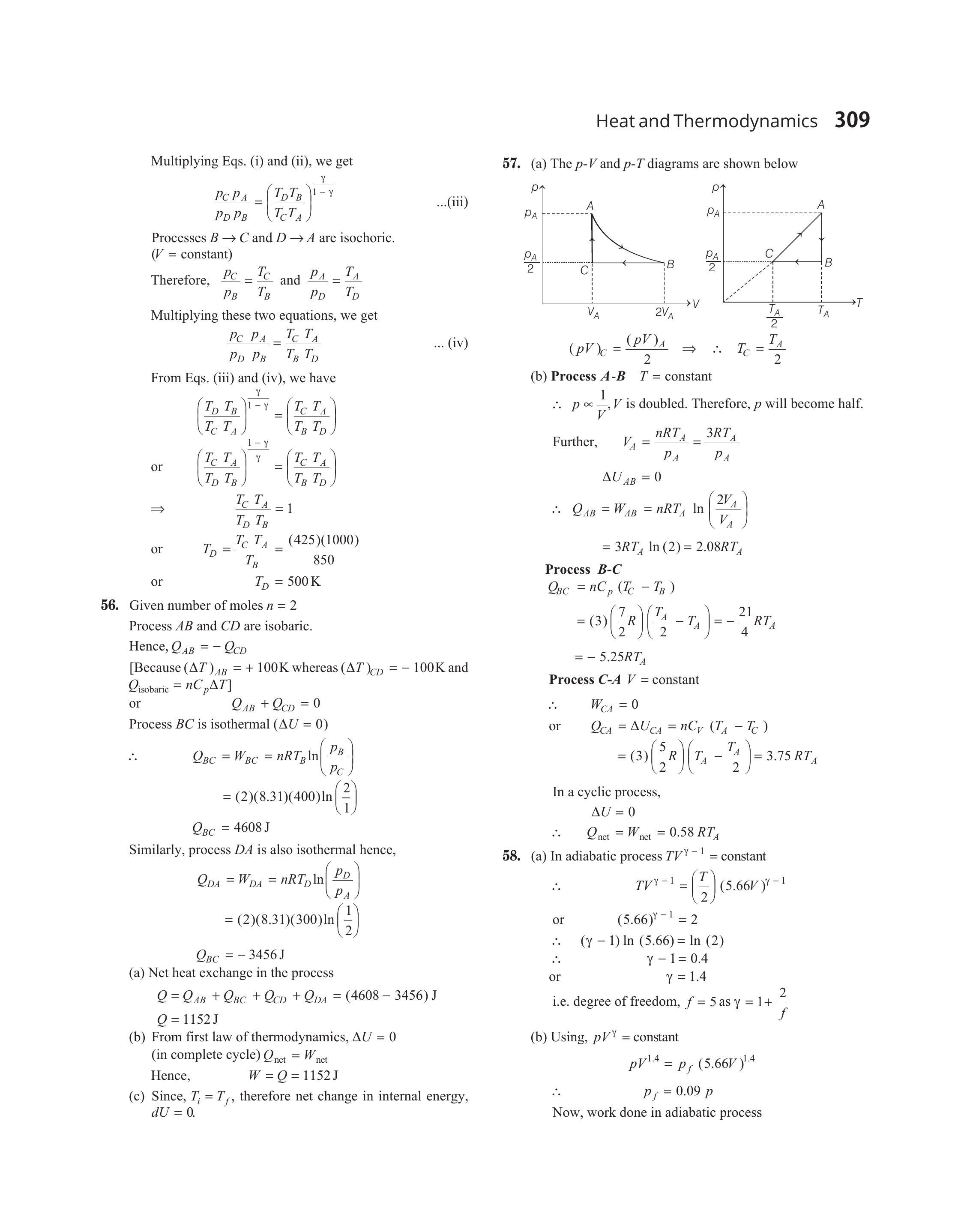 $$ \begin{aligned} \Delta U & =0 \\ \therefore \quad Q _{\text {net }} & =W _{\text {net }}=0.58 R T _{A} \end{aligned} $$