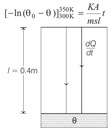 $$ \therefore \quad t=\frac{m s l}{K A} \ln \left(\frac{\theta _0-300}{\theta _0-350}\right) $$