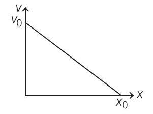 $$ \begin{aligned} & v=-\frac{v _0}{x _0} x+v _0 \cdots(i)\\ & a=\frac{d v}{d t}=-\frac{v _0}{x _0} \frac{d x}{d t}=-\frac{v _0}{x _0} v \end{aligned} $$