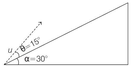 Here, $u=2 ms^{-1}, g=10 ms^{-2}, \theta=15^{\circ}, \alpha=30^{\circ}$