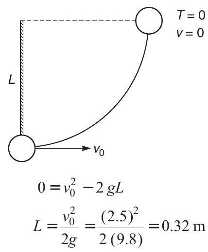 (b) Tension in the string becomes zero at horizontal position. It implies that velocity of combined mass also becomes zero in horizontal position. Applying conservation of energy, we have