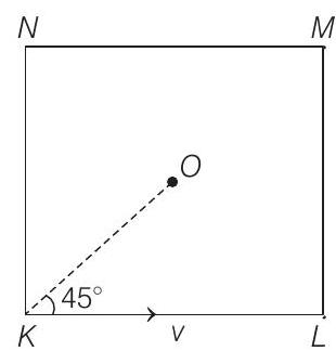 Component of velocity along $K O$ (or $L O$ etc) at any instant will be $v \cos 45^{\circ}$ or $\frac{v}{\sqrt{2}}$.