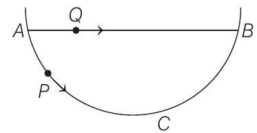 (d) $\frac{t _P}{t _Q}=\frac{\text { length of } \operatorname{arc} A C B}{\text { length of chord } A B}$
