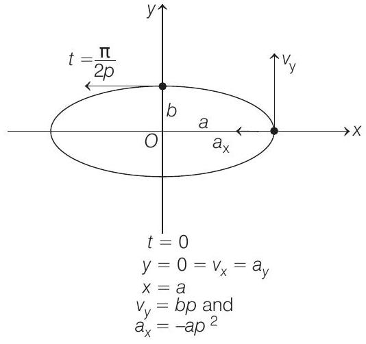At $t=0$, particle is at $(a, 0)$ and at $t=\pi / 2 p$