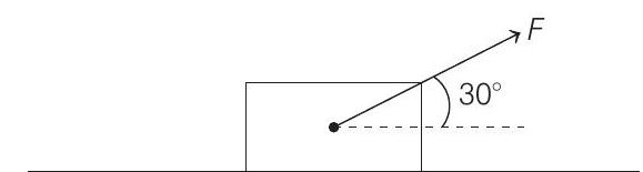$$ \begin{aligned} & F_{\text {net }}=F \cos 30^{\circ}-f=F \cos 30^{\circ}-\mu N \\ \Rightarrow \quad & F_{\text {net }}=F \cos 30^{\circ}-\mu\left(m g-F \sin 30^{\circ}\right) \end{aligned} $$