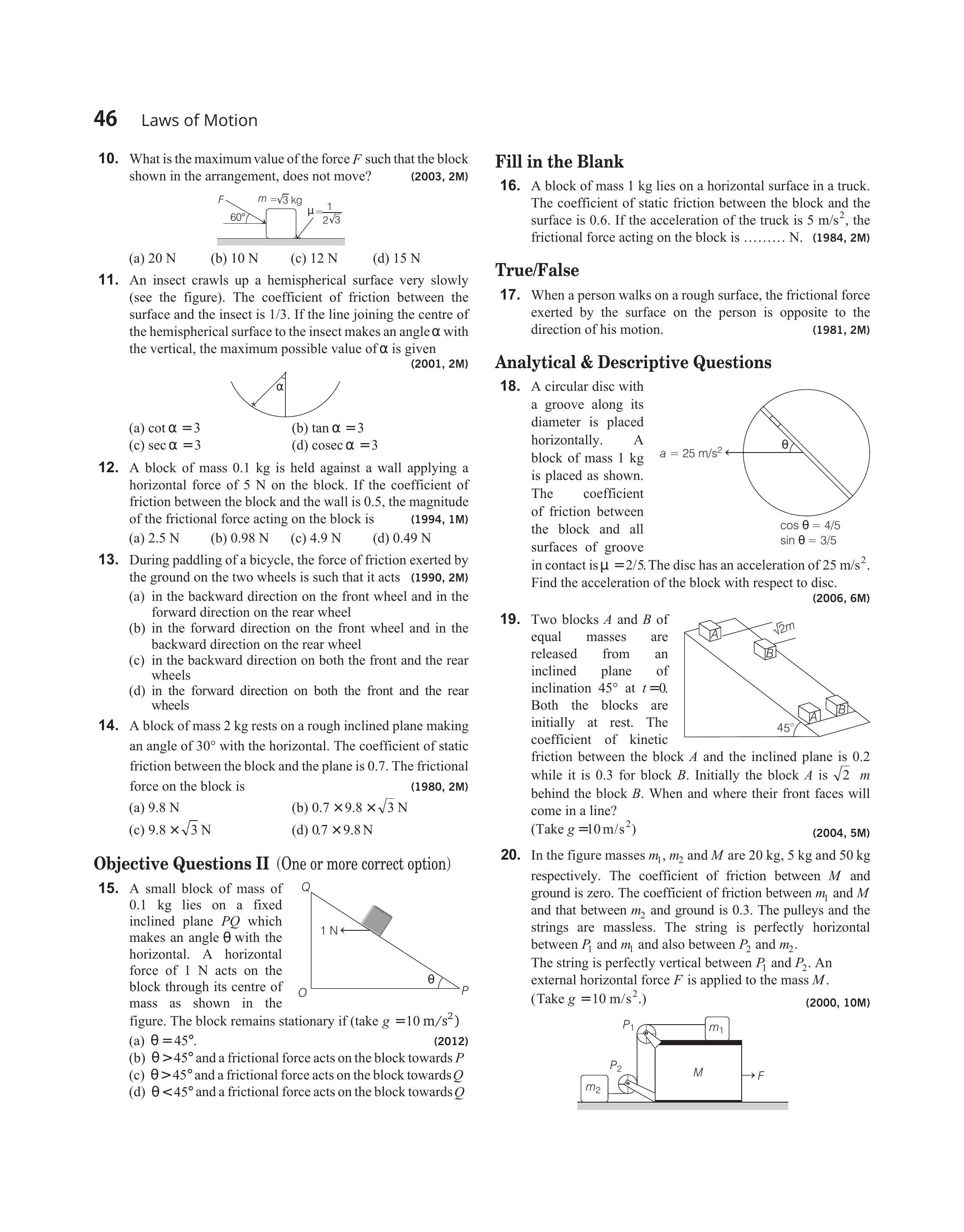 - What is the maximum value of the force $F$ such that the block shown in the arrangement, does not move?