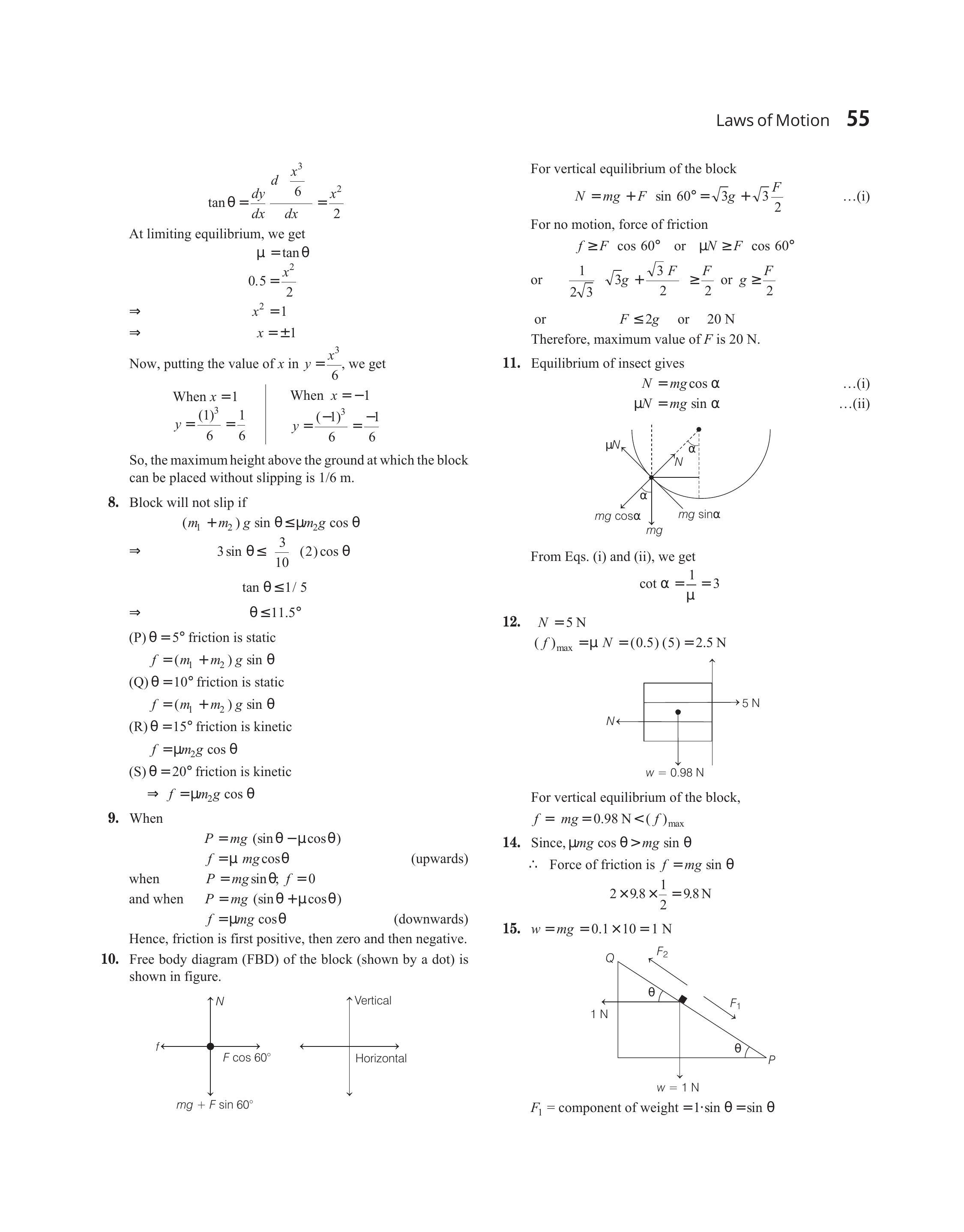 $$ \begin{gathered} f \geq F \cos 60^{\circ} \text { or } \mu N \geq F \cos 60^{\circ} \\ \text { or } \quad \frac{1}{2 \sqrt{3}} \sqrt{3} g+\frac{\sqrt{3} F}{2} \geq \frac{F}{2} \text { or } g \geq \frac{F}{2} \\ \text { or } \text{ } F \leq 2 g \text { or } 20 N \end{gathered} $$