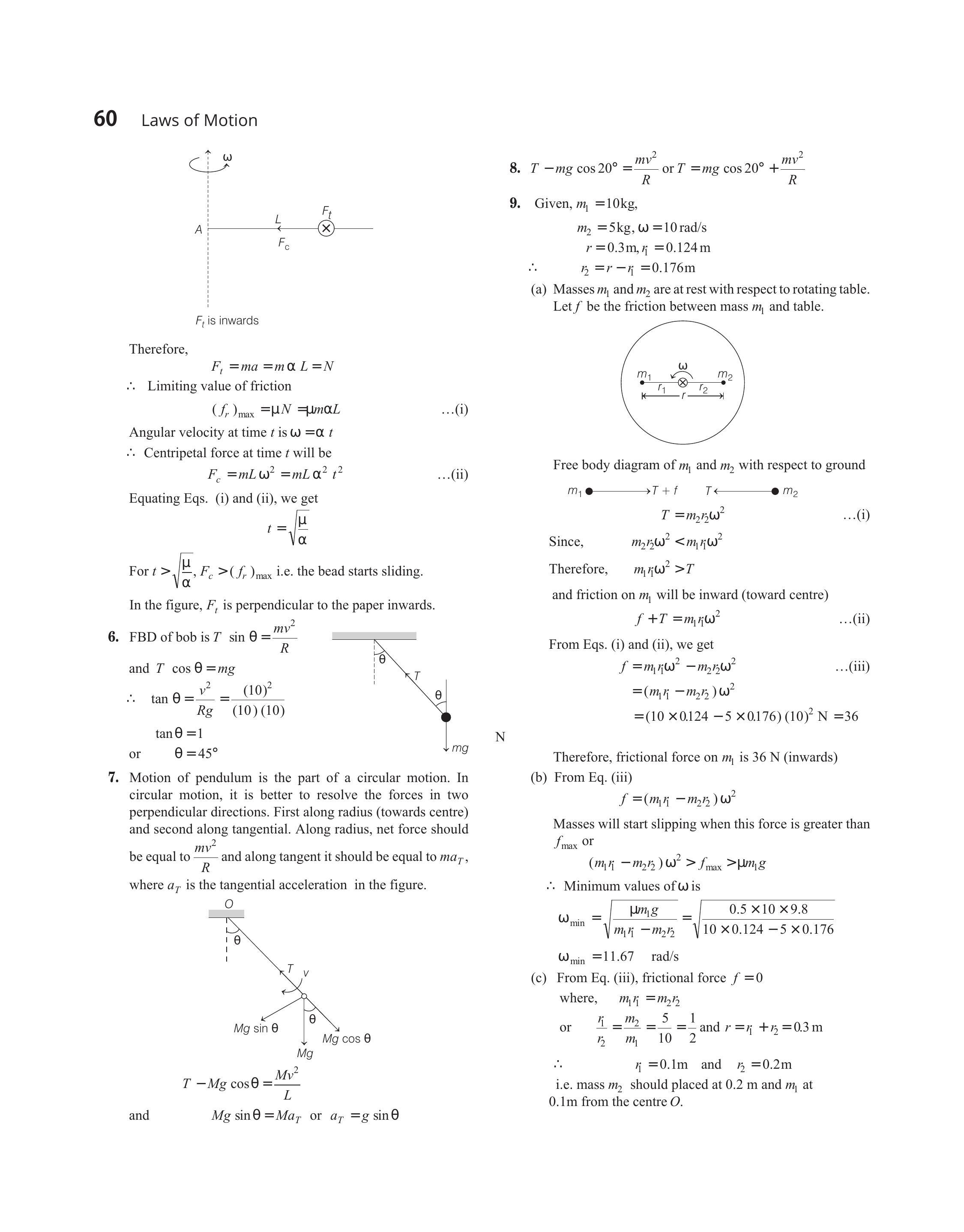 (a) Masses $m _1$ and $m _2$ are at rest with respect to rotating table. Let $f$ be the friction between mass $m _1$ and table.
