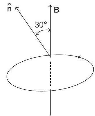 (b) The atom is placed in a uniform magnetic induction $\mathbf{B}$ such that the normal to the plane of electron’s orbit makes an angle of $30^{\circ}$ with the magnetic induction. Find the torque experienced by the orbiting electron.