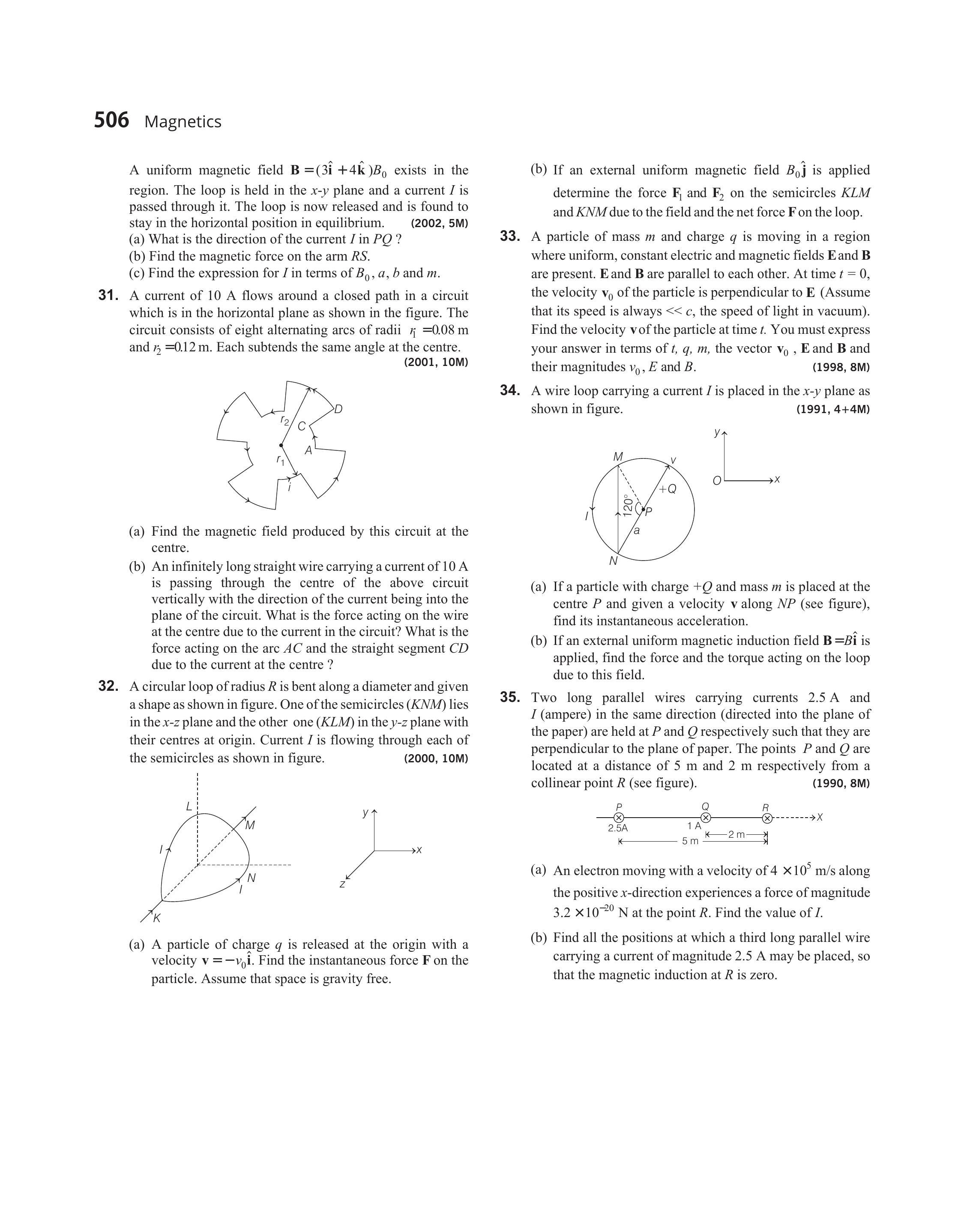 Correct Answer: 132.(a) $\frac{0.11 \mu _0 I Q v}{2 a m}(\hat{\mathbf{j}}-\sqrt{3} \hat{\mathbf{i}}) \quad$ (b) zero, $\left(0.61 I a^{2} B\right) \hat{\mathbf{j}}$