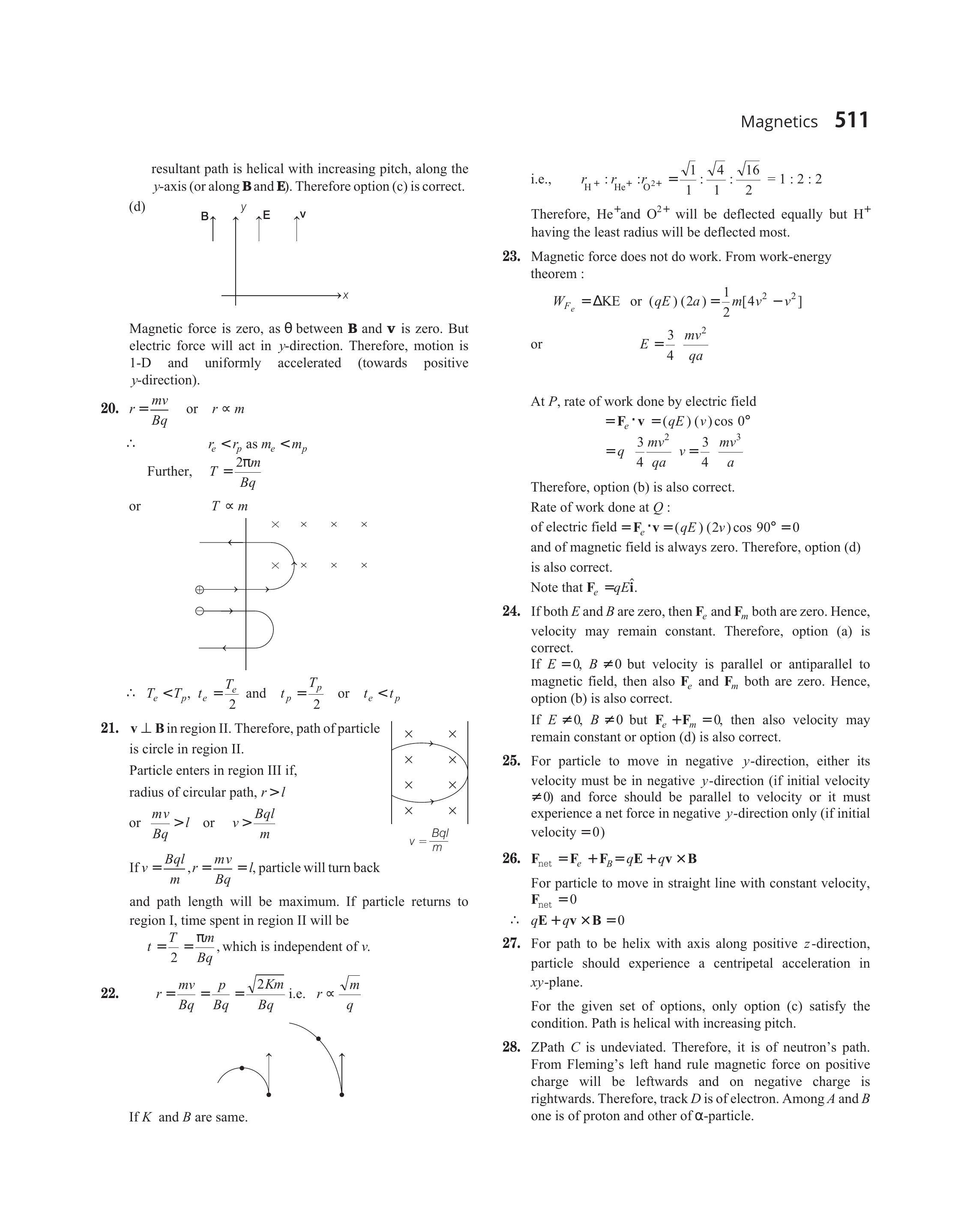 - $\mathbf{v} \perp \mathbf{B}$ in region II. Therefore, path of particle is circle in region II.