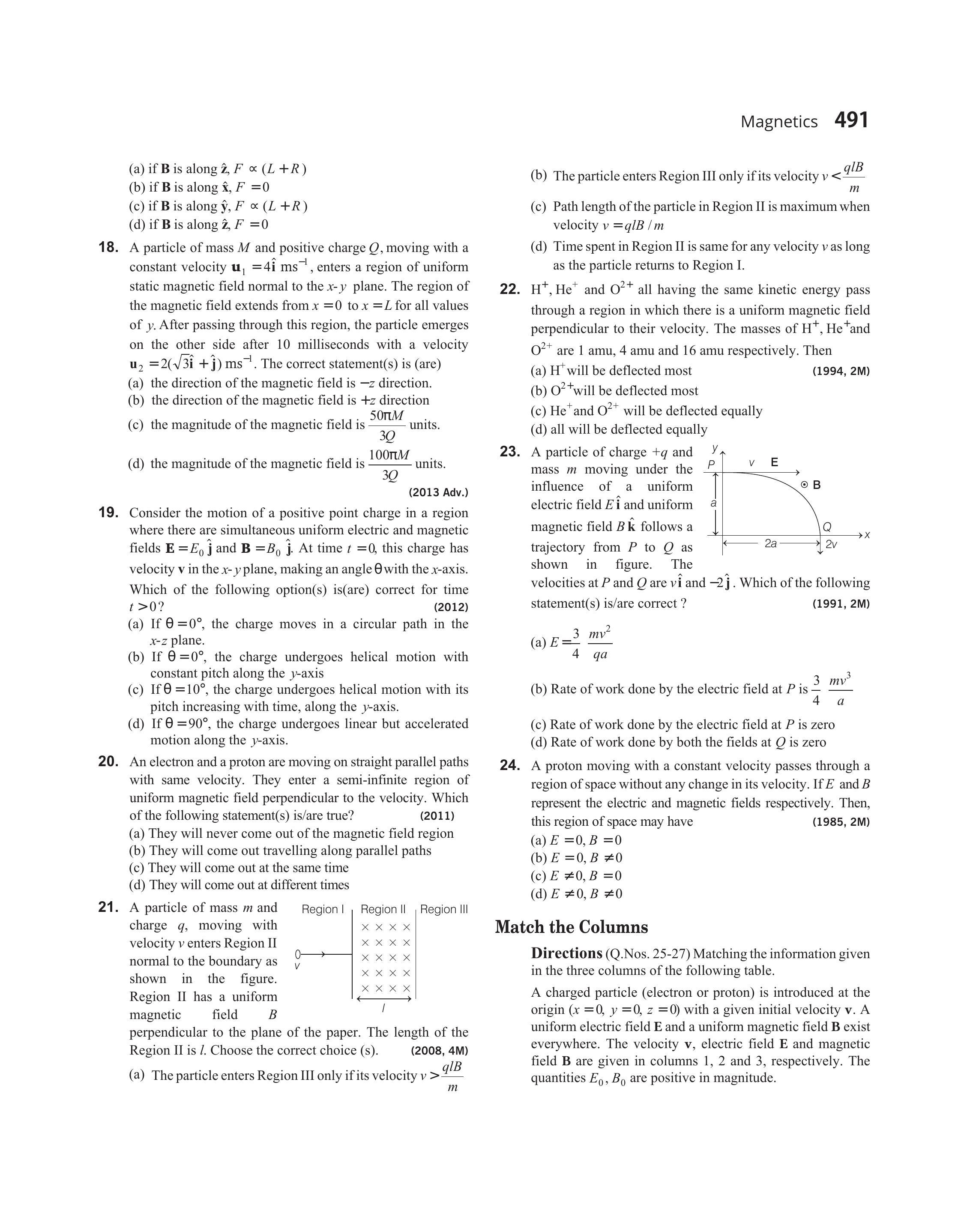 $ \begin{gathered} W _{F _e}=\Delta KE \text { or }(q E)(2 a)=\frac{1}{2} m\left[4 v^{2}-v^{2}\right] \\ \text { or } \quad E=\frac{3}{4} (\frac{m v^{2}}{q a}) \end{gathered} $