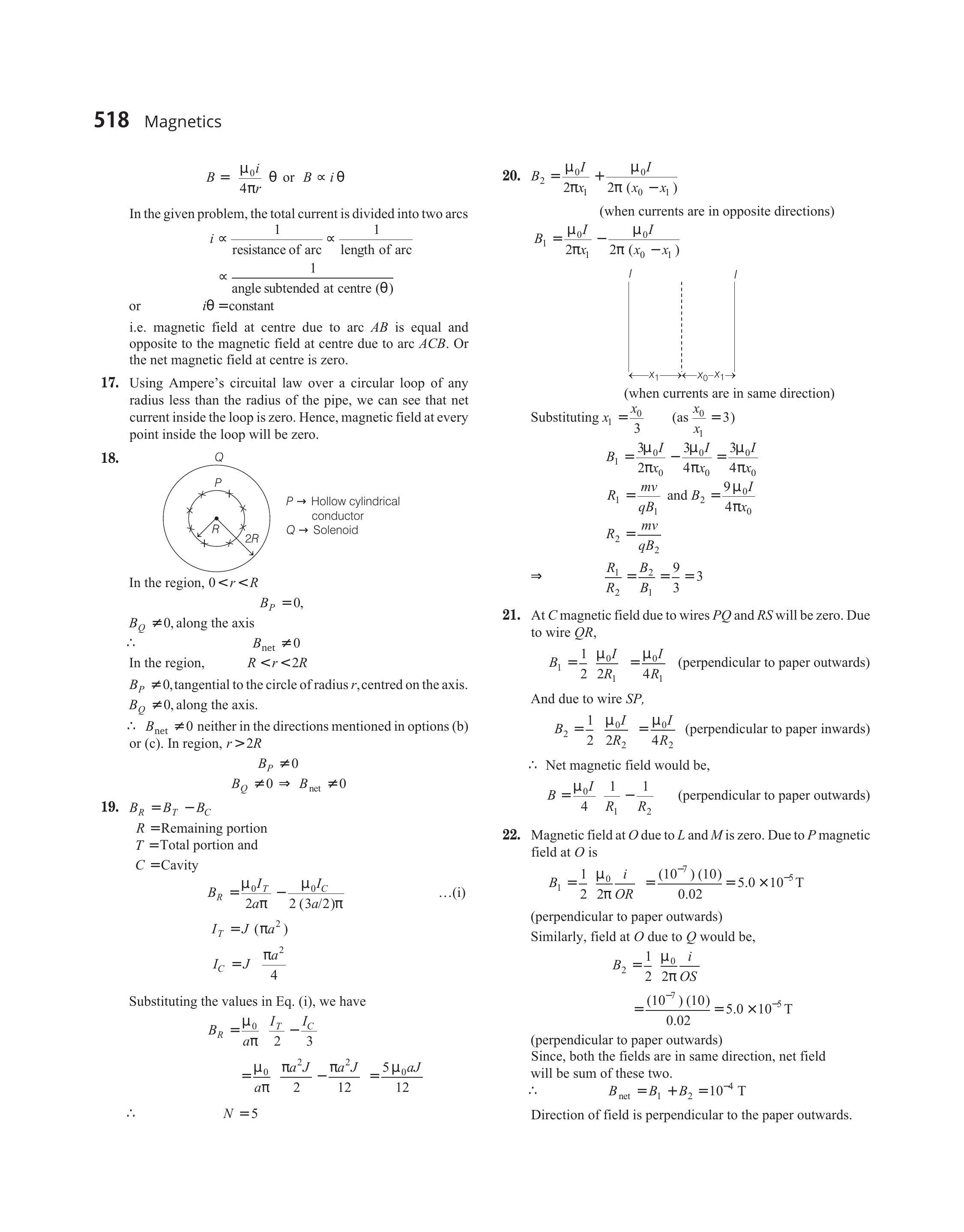 - $B _2=\frac{\mu _0 I}{2 \pi x _1}+\frac{\mu _0 I}{2 \pi\left(x _0-x _1\right)}$ (when currents are in opposite directions)