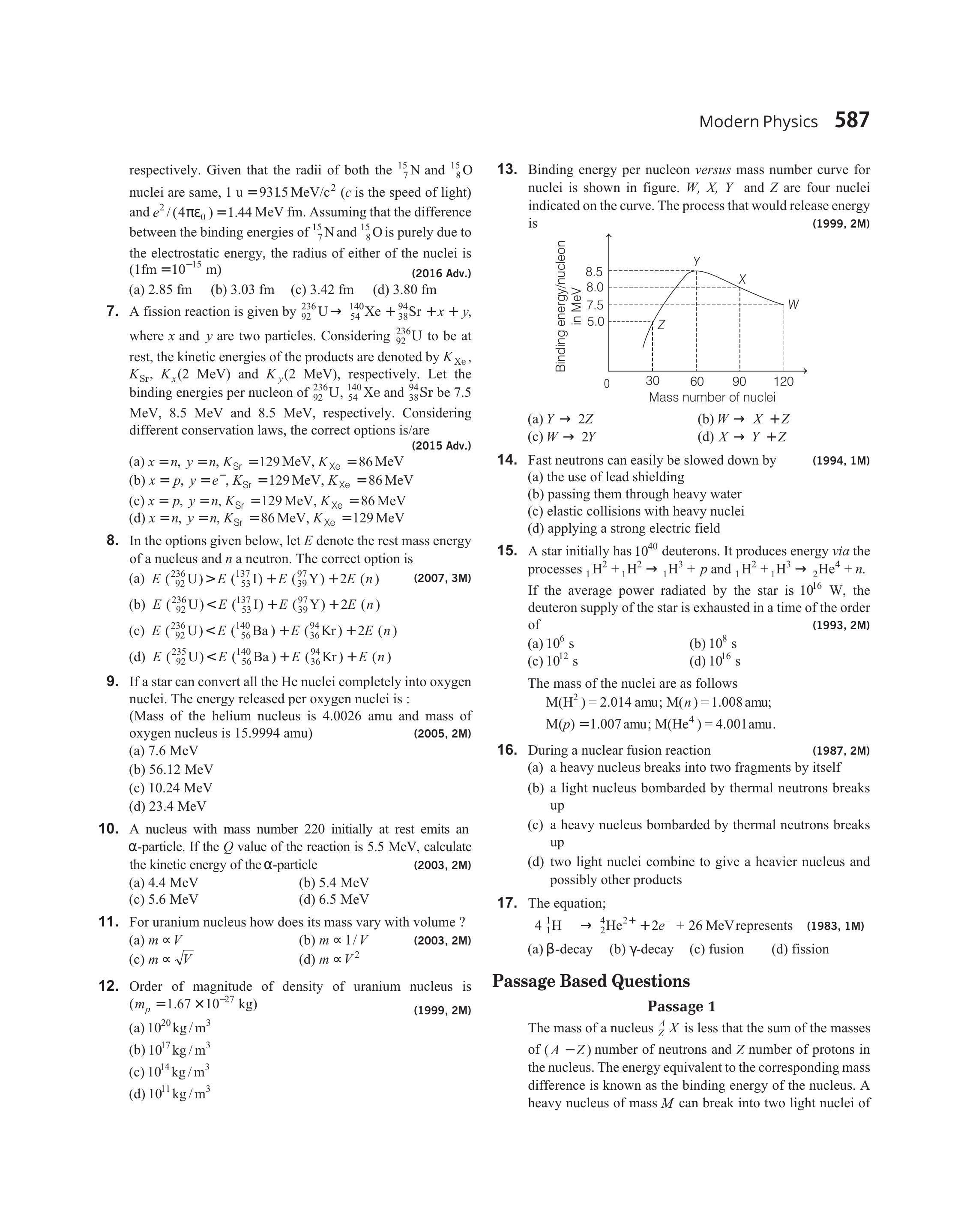- Binding energy per nucleon versus mass number curve for nuclei is shown in figure. $W, X, Y$ and $Z$ are four nuclei indicated on the curve. The process that would release energy is