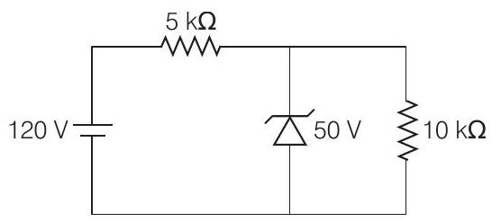 - For the circuit shown below, the current through the Zener diode is
