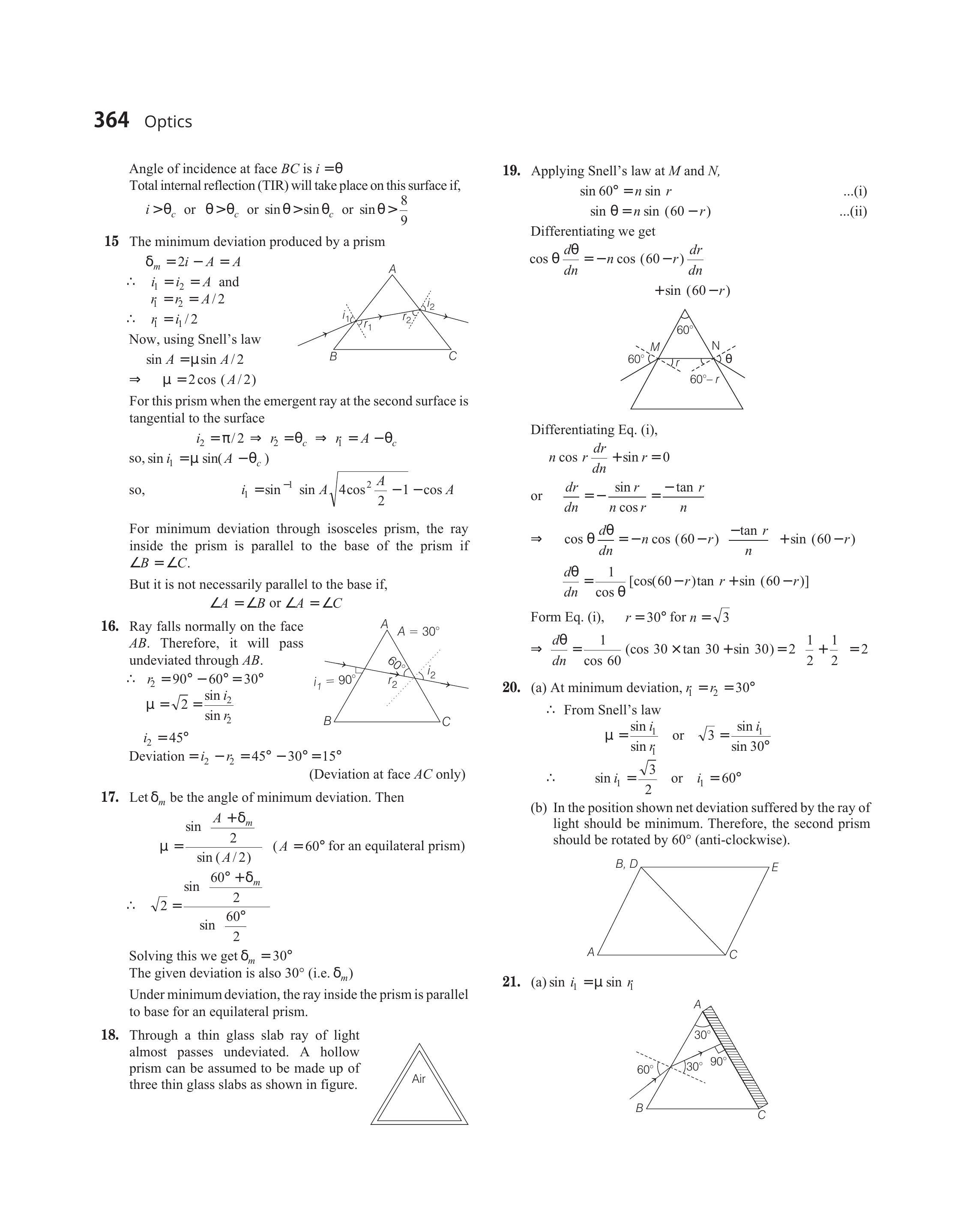 $\Rightarrow \frac{d \theta}{d n}=\frac{1}{\cos 60}(\cos 30 \times \tan 30+\sin 30)=2 (\frac{1}{2}+\frac{1}{2})=2$