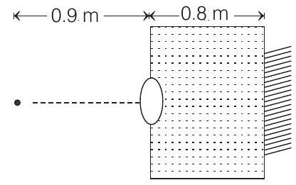 - A thin equiconvex lens of glass of refractive index $\mu=3 / 2$ and of focal length $0.3 m$ in air is sealed into an opening at one end of a tank filled with water $\mu=4 / 3$. On the opposite side of the lens, a mirror is placed inside the tank on the tank wall perpendicular to the lens axis, as shown in figure. The separation between the lens and the mirror is $0.8 m$. A small object is placed outside the tank in front of lens. Find the position (relative to the lens) of the image of the object formed by the system