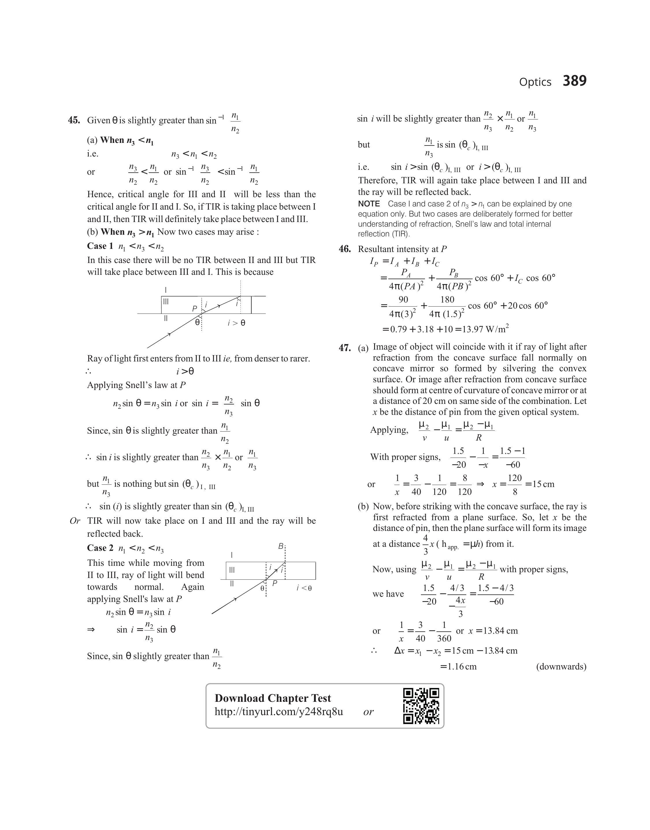 Hence, critical angle for III and II will be less than the critical angle for II and I. So, if TIR is taking place between I and II, then TIR will definitely take place between I and III.