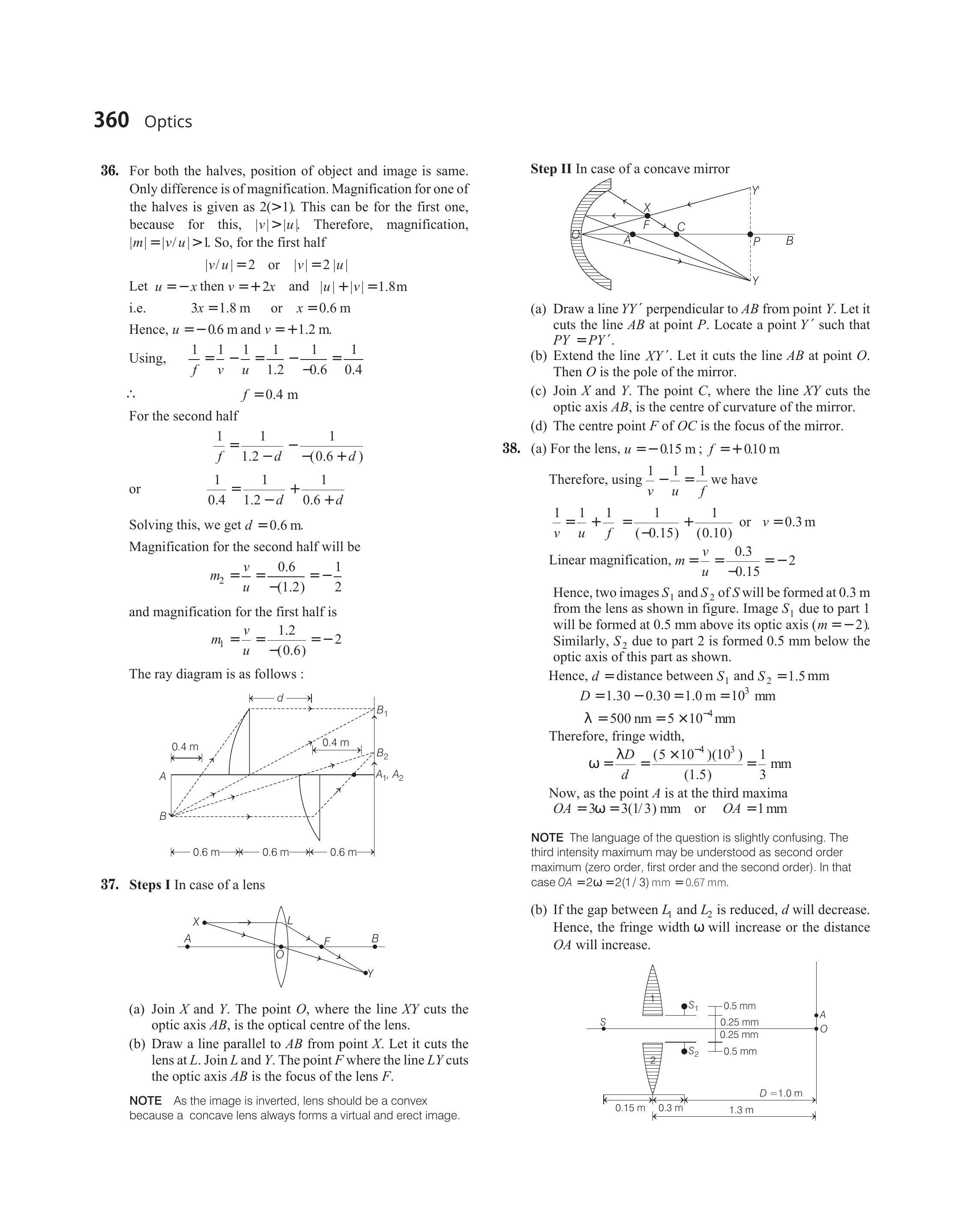 - For both the halves, position of object and image is same. Only difference is of magnification. Magnification for one of the halves is given as $2(>1)$. This can be for the first one, because for this, $|v|>|u|$. Therefore, magnification, $|m|=|v / u|>1$. So, for the first half