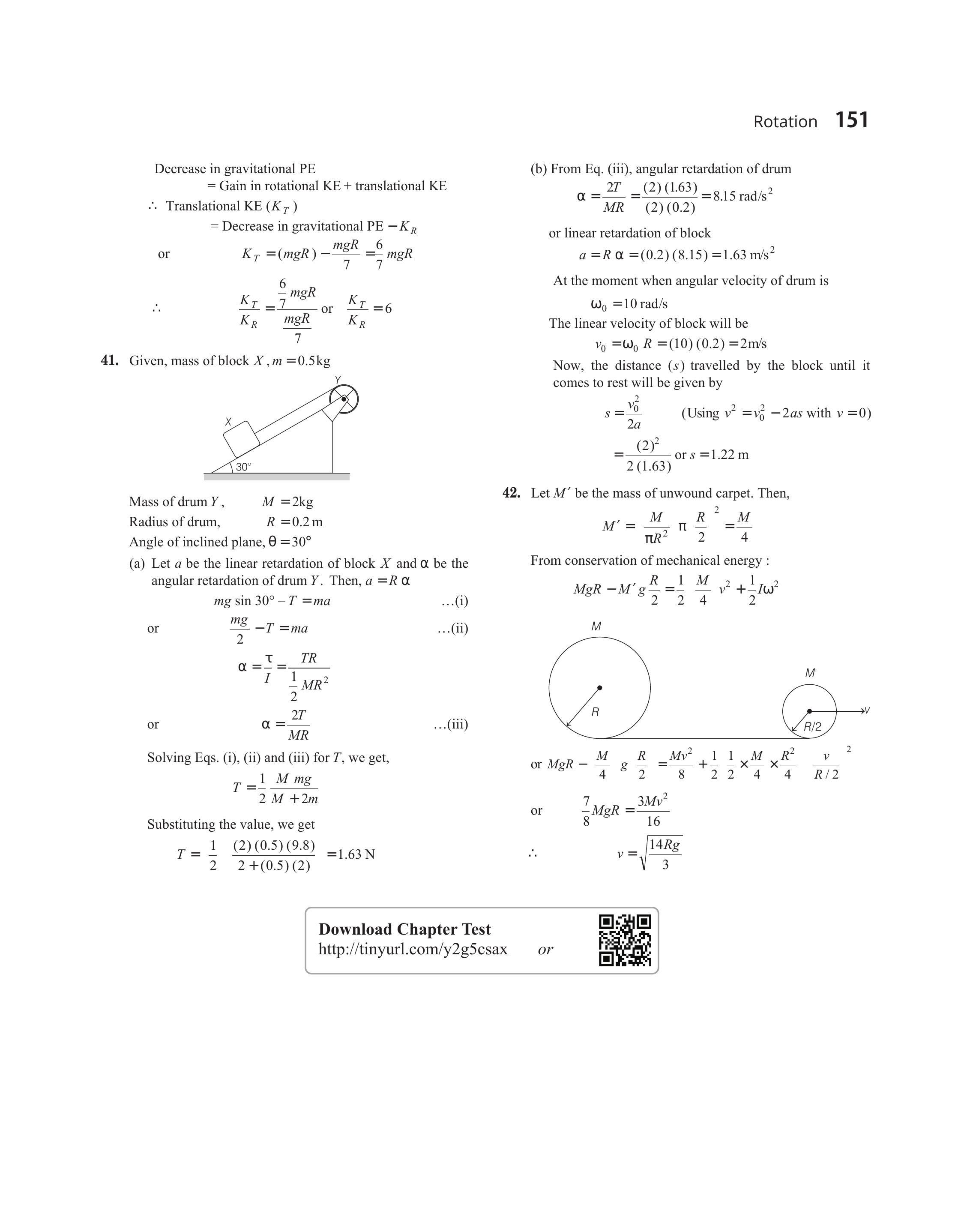 or $M g R-\frac{M}{4} g \frac{R}{2}=\frac{M v^{2}}{8}+\frac{1}{2} \frac{1}{2} \times \frac{M}{4} \times \frac{R^{2}}{4} \quad \frac{v}{R / 2}$