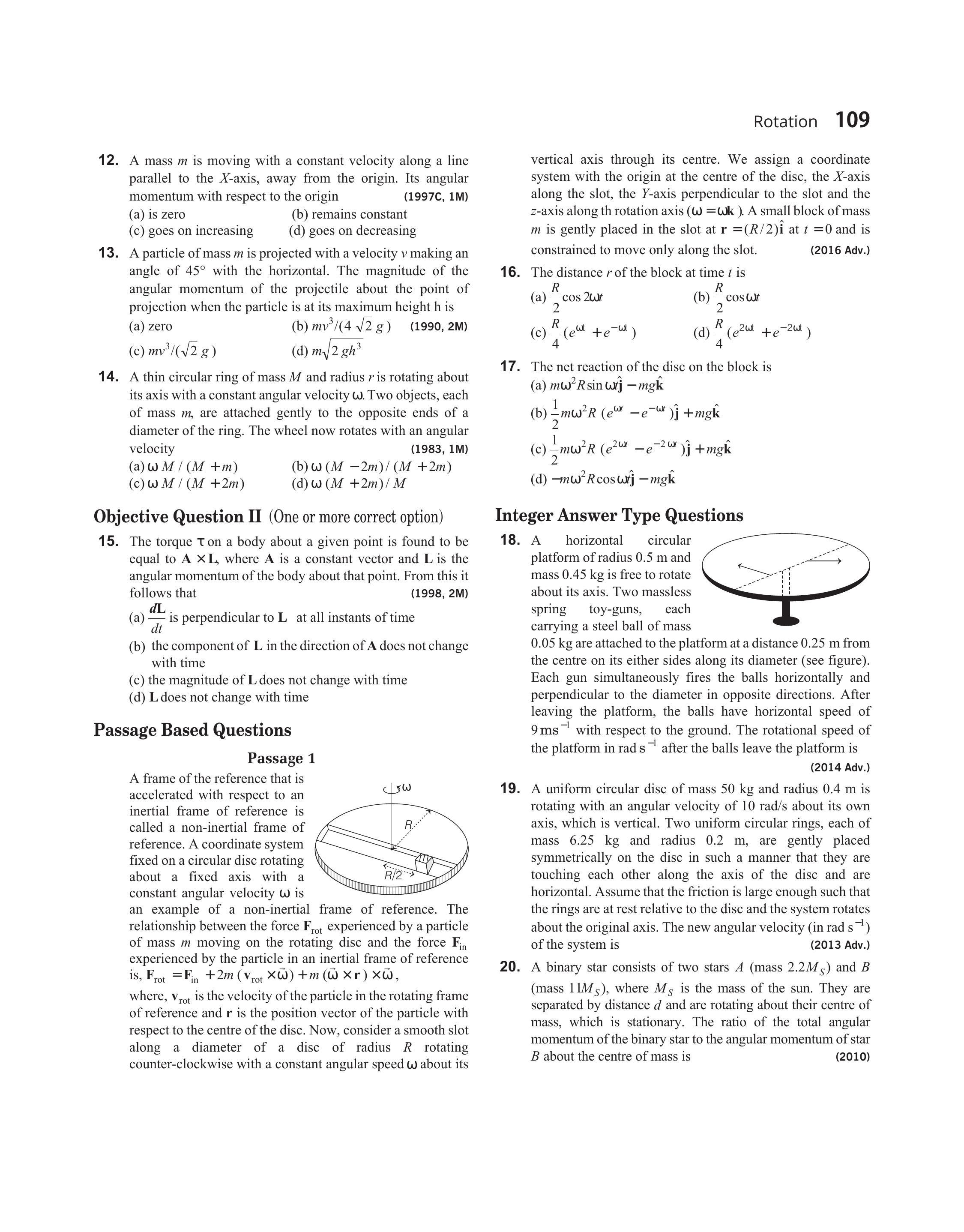 $$ \begin{alignedat} 2 m v r-\frac{M R^{2}}{2} \omega =0 \ \omega & =\frac{4 m v r}{M R} \end{aligned} $$