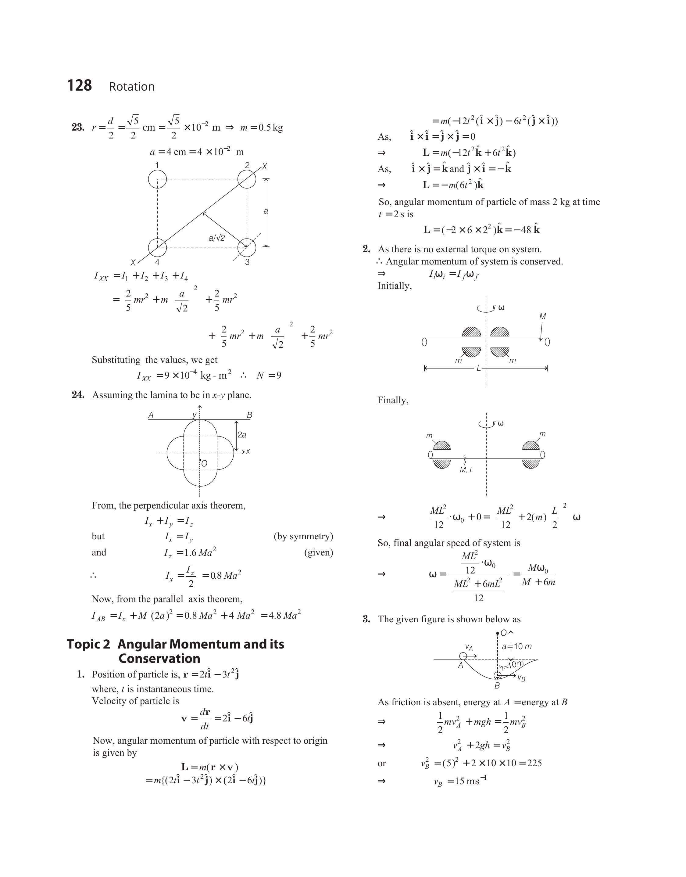 $$ \begin{aligned} & =m v _B r _B \\ & =20 \times 10^{-3} \times 15 \times 20=6 kg-m^{2} s^{-1} \end{aligned} $$