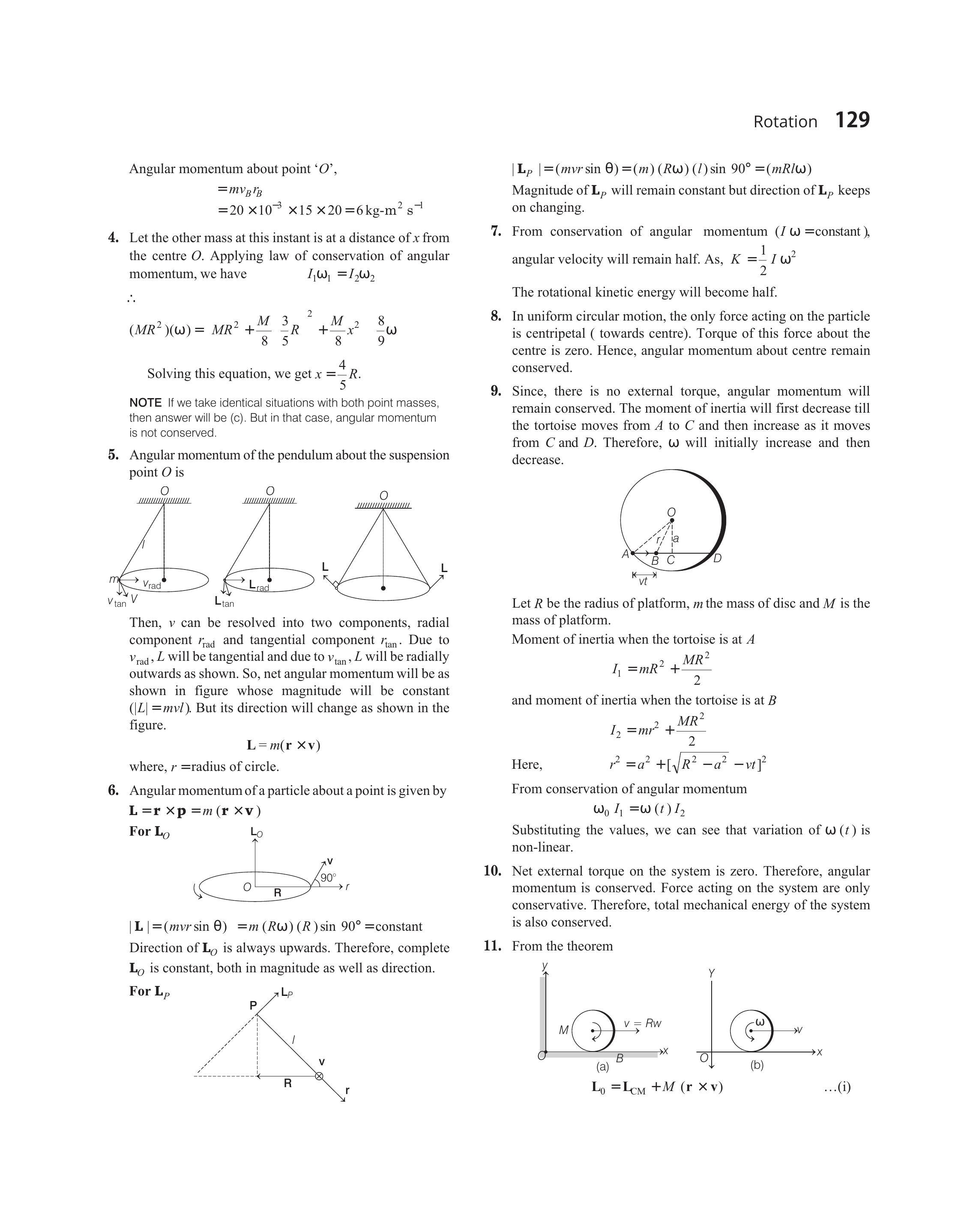 $|\mathbf{L}|=(m v r \sin \theta)=m(R \omega)(R) \sin 90^{\circ}=$ constant Direction of $\mathbf{L} _O$ is always upwards. Therefore, complete $\mathbf{L} _O$ is constant, both in magnitude as well as direction.