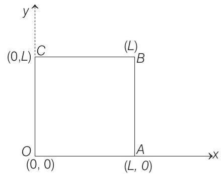 $$ \begin{aligned} O A \text { i.e. } y & =0 & & 0 \leq x \leq L \\ A B \text { i.e. } x & =L & & 0 \leq y \leq L \\ B C \text { i.e. } y & =L & & 0 \leq x \leq L \\ O C \text { i.e. } x & =0 & & 0 \leq y \leq L \end{aligned} $$