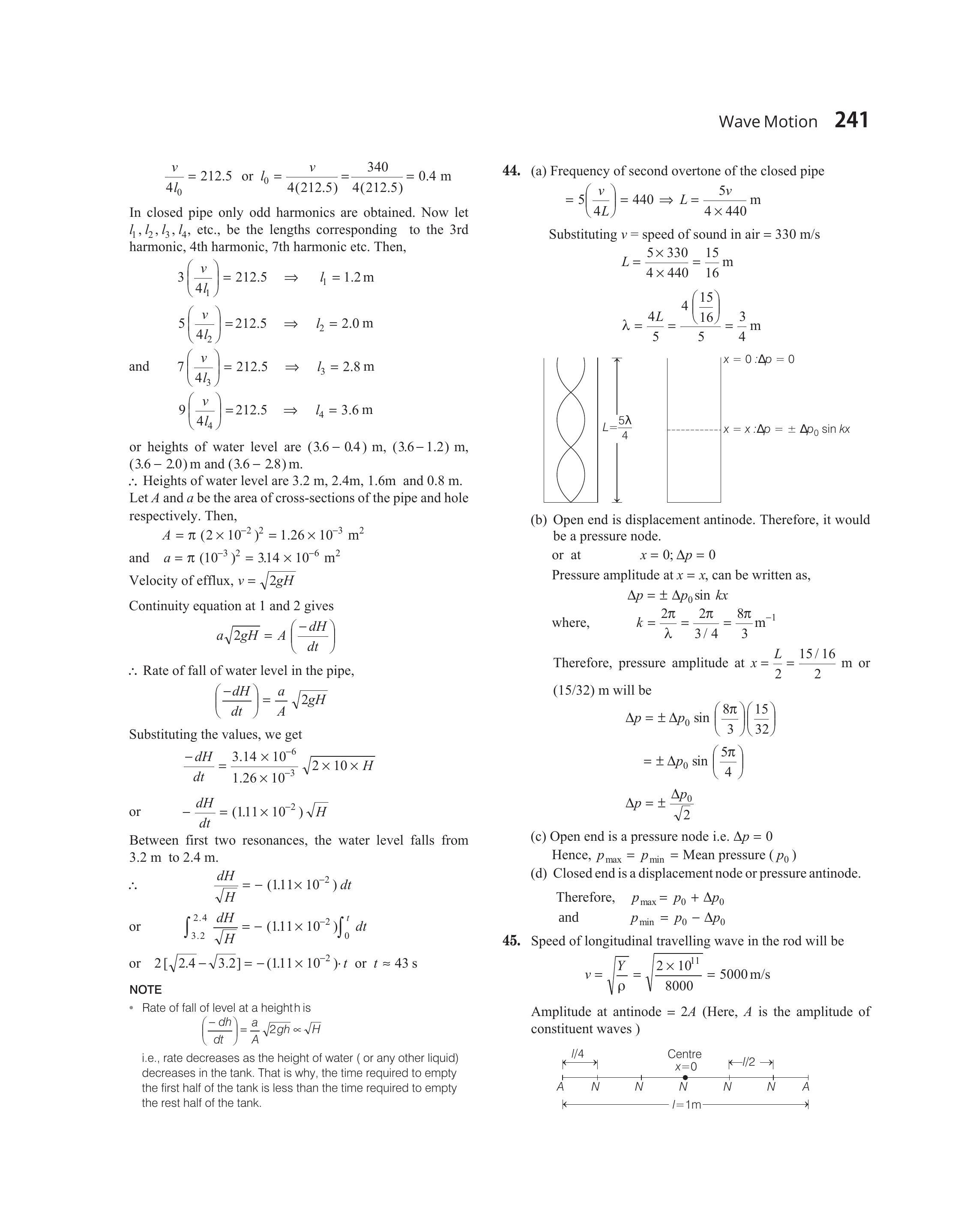 $$ \begin{aligned} & =2 \times 10^{-6} m \\ & \therefore \quad A=10^{-6} m \Rightarrow l=\frac{5 \lambda}{2} \\ & \Rightarrow \quad \lambda=\frac{2 l}{5}=\frac{(2)(1.0)}{5} m=0.4 m \end{aligned} $$