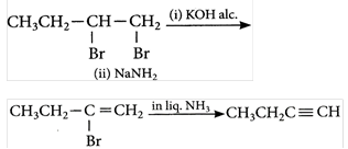 Question: The major product of the following reaction is $ CH _3CH _2\underset{\begin{smallmatrix} | \\ Br \end{smallmatrix}}{\mathop{CH}},-\underset{\begin{smallmatrix} | \\ Br \end{smallmatrix}}{\mathop{CH _2}},\xrightarrow[(ii)NaNH _2in,liq.NH _3]{(i),KOH,alc.} $ [JEE Main Online Paper Held On 12-Jan-2019 Evening]