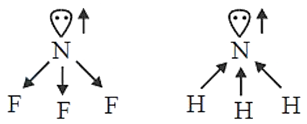 Since fluorine is more electronegative than nitrogen, the net dipole moment of $NF_3$ is less than $NH_3$.