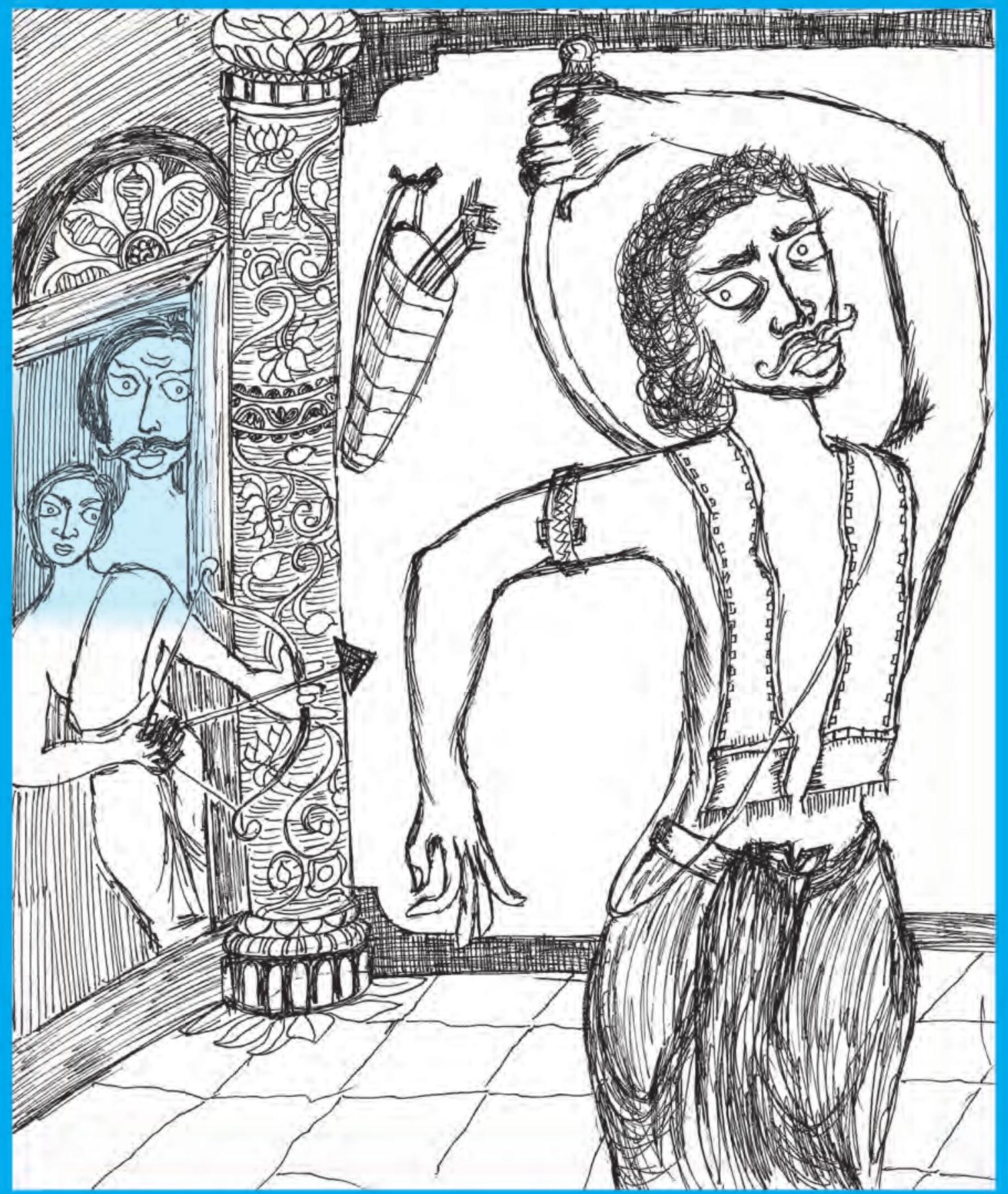 “तुम मेरे भाई नहीं, शत्रु हो। मेरे शत्रु के शुभचिंतक हो,” रावण का क्रोध भड़क उठा। “निकल जाओ यहाँ से। मुझे तुम्हारा साथ नहीं चाहिए।” रावण सभागार की ओर मुड़ गया। विभीषण पीछे। दोनों के रास्ते अलग हो गए।