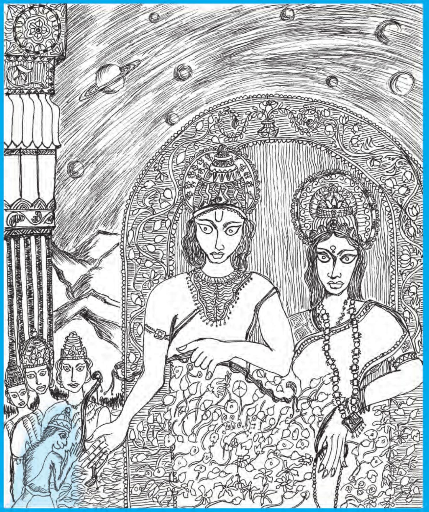 राम ने सीता को एक पतली, चमकती हुई रेखा दिखाई। “सीते! देखो, यह गोदावरी नदी है। ऊँचाई से इतनी छोटी दिख रही है। इसी के तट पर पंचवटी है। देखो, हमारी पर्णकुटी अब भी बनी हुई है।" सीता ने आँखें बंद कर लीं। जैसे पंचवटी को पुनः देखने से डर रही हों। उन्हें पूरा घटनाक्रम याद आ गया।