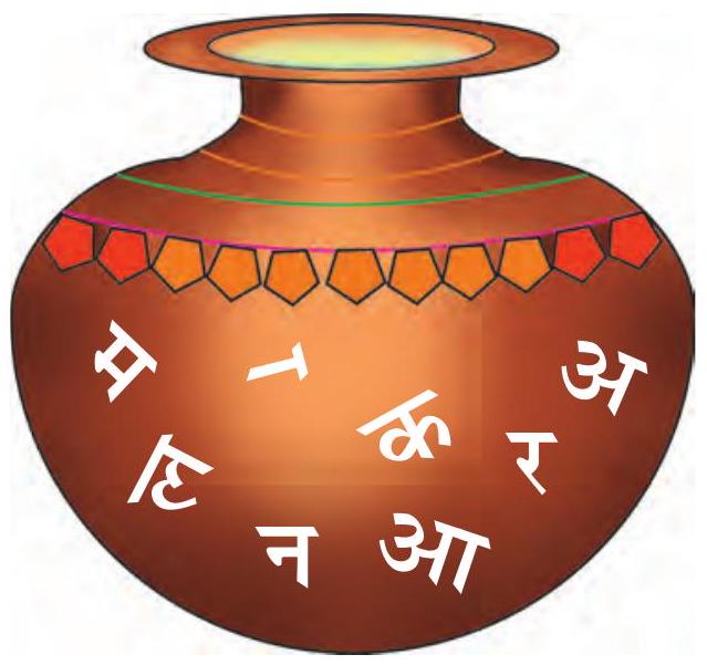 6. घड़े में से वर्ण एवं मात्रा को चुनकर सार्थक शब्द बनाओ और नीचे लिखो, जैसे नल, कलम