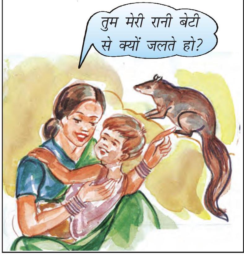 5. उसे नेवले पर गुस्सा आता रहता था। स्त्री को संदेह था कि नेवला उसकी बेटी से जलता है और इसलिए वह चुपचाप बैठा रहता है।
