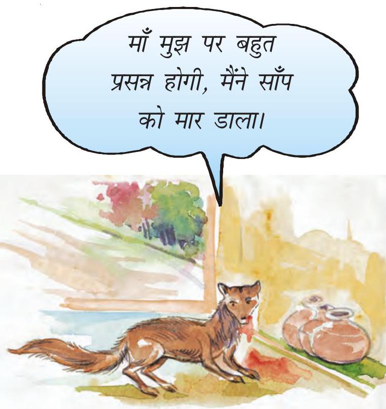 नेवला घर से बाहर आकर स्त्री की प्रतीक्षा करने लगा। उसे अपनी विजय पर गर्व था।