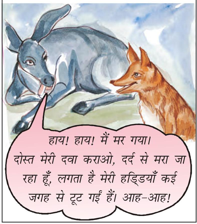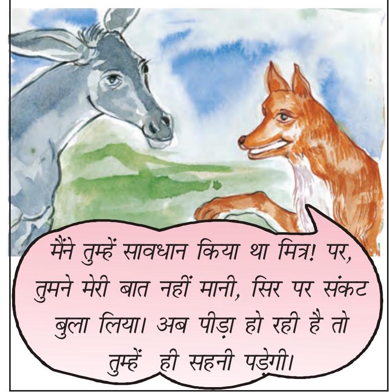 12. बेचारा गधा मार खाता रहा। दूर खड़ा सियार दुखी मन से मित्र गधे की दुर्दशा देखता रहा।