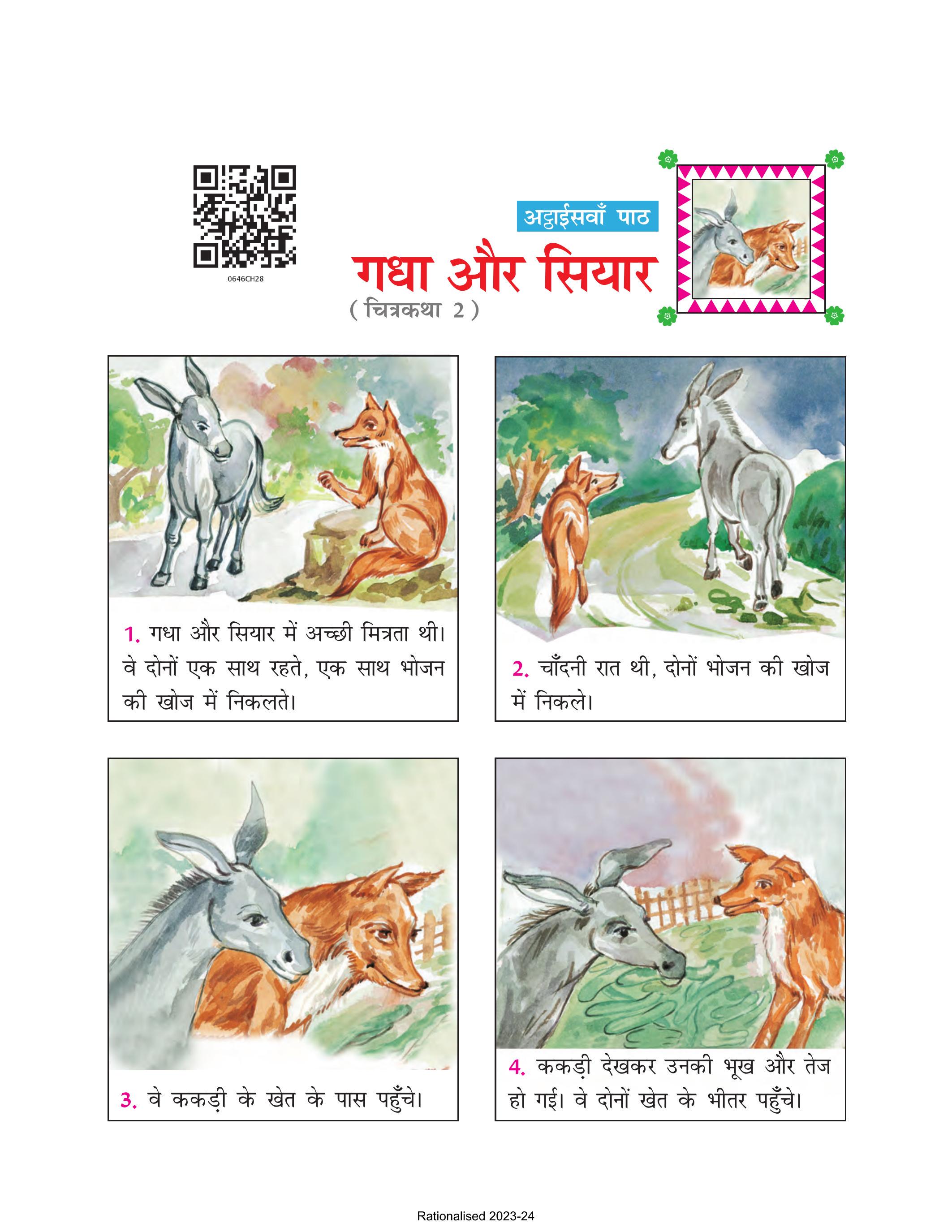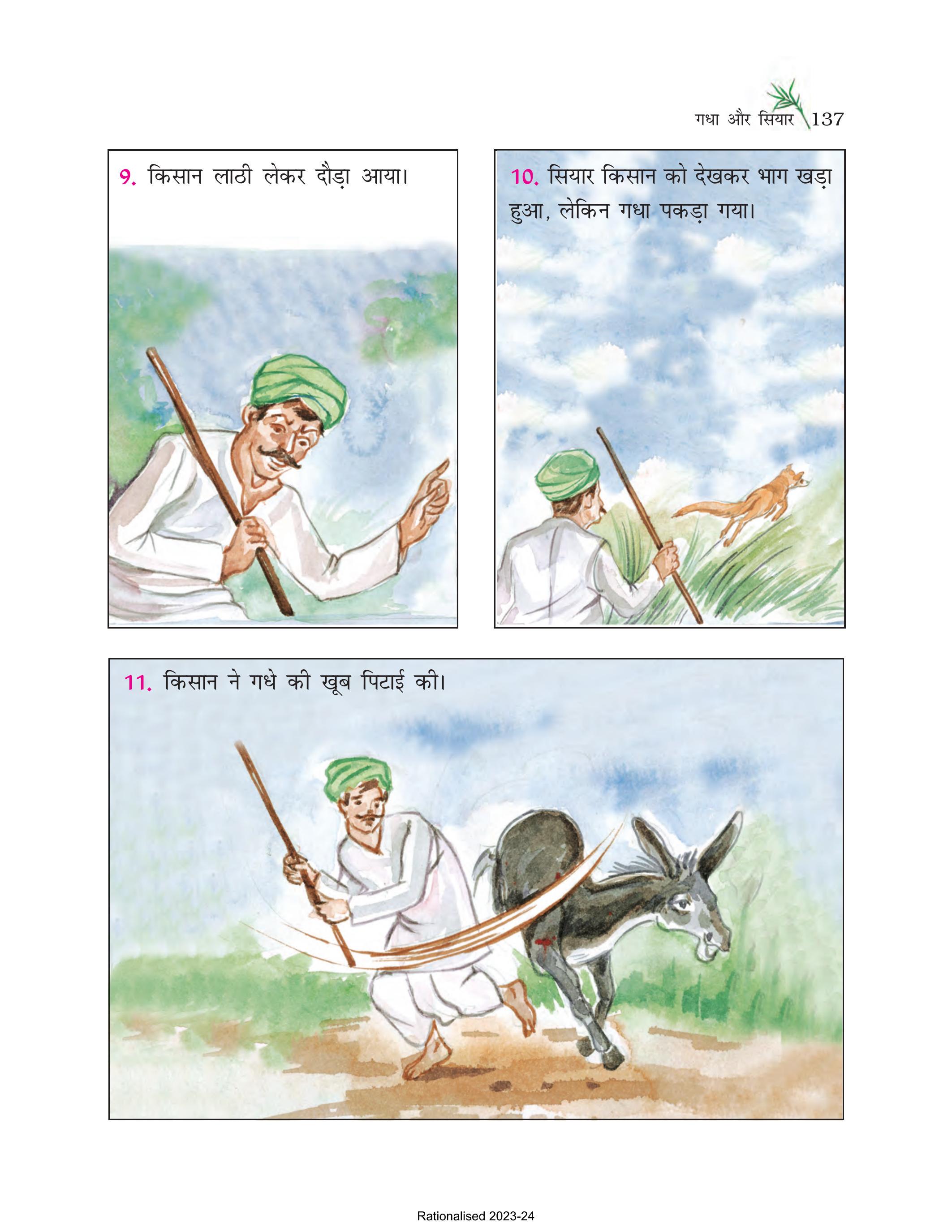 12. बेचारा गधा मार खाता रहा। दूर खड़ा सियार दुखी मन से मित्र गधे की दुर्दशा देखता रहा।