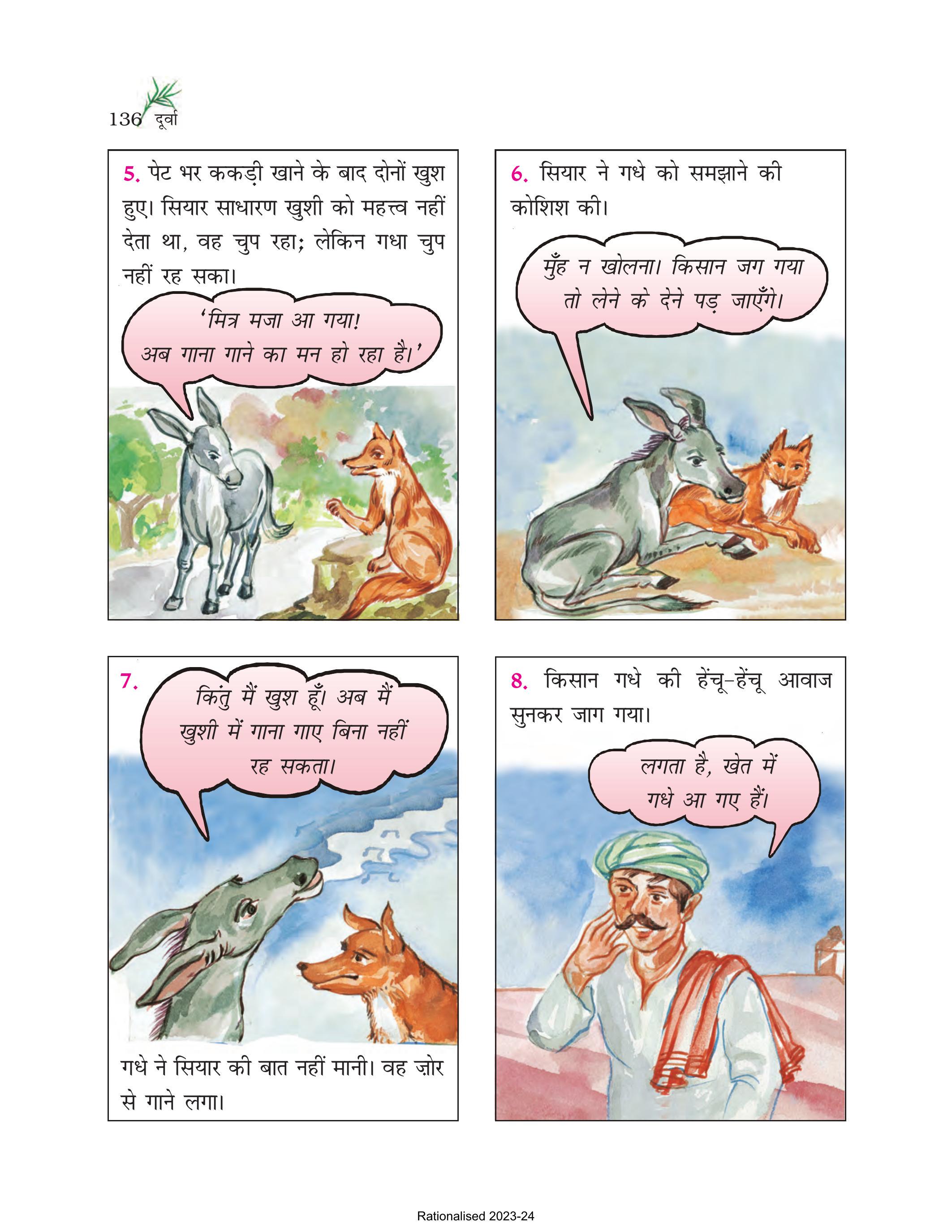 8. किसान गधे की हेंचू-हेंचू आवाज सुनकर जाग गया।