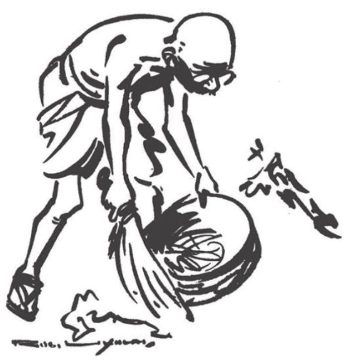 कौपीनधारी इस महान व्यक्ति को अनाज बीनते देखकर उनसे मिलने वाले लोग हैरत में पड़ जाते थे। बाहरी लोगों के सामने शारीरिक मेहनत का काम करते गांधी को शर्म नहीं लगती थी। एक बार उनके पास कॉलेज के कोई छात्र मिलने आए। उनको अंग्रेज़ी भाषा के अपने ज्ञान का बड़ा गर्व था। गांधी से बातचीत के अंत में वे बोले, “बापू, यदि मैं आपकी कोई सेवा कर सकूँ तो कृपया मुझे अवश्य बताएँ।” उन्हें आशा थी कि बापू उन्हें कुछ लिखने-पढ़ने का काम देंगे। गांधी ने उनके मन की बात ताड़ ली और बोले, “अगर आपके पास समय हो, तो इस थाली के गेहूँ बीन डालिए।” आगंतुक बड़ी मुश्किल में पड़ गए, लेकिन अब तो कोई चारा नहीं था। एक घंटे तक गेहूँ बीनने के बाद वह थक गए और गांधी से विदा माँग कर चल दिए।
