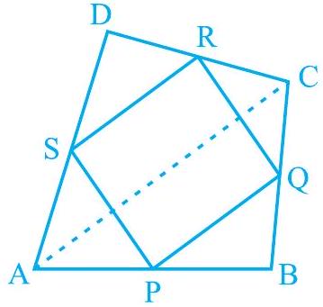 1. $A B C D$ is a quadrilateral in which $P, Q, R$ and $S$ are mid-points of the sides $\mathrm{AB}, \mathrm{BC}, \mathrm{CD}$ and $\mathrm{DA}$ (see Fig 8.20). AC is a diagonal. Show that :