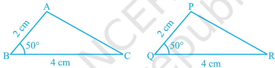 Repeat this activity with more pairs of triangles. You will observe that for triangles to be congruent, it is very important that the equal angles are included between the pairs of equal sides.