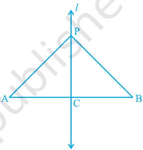 Example 2 : AB is a line segment and line $l$ is its perpendicular bisector. If a point $\mathrm{P}$ lies on $l$, show that $\mathrm{P}$ is equidistant from $\mathrm{A}$ and $\mathrm{B}$.