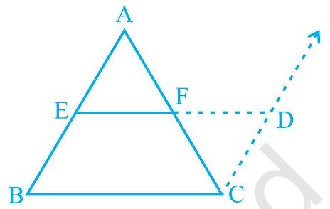 4. $\mathrm{ABCD}$ is a trapezium in which $\mathrm{AB} || \mathrm{DC}, \mathrm{BD}$ is a diagonal and $\mathrm{E}$ is the mid-point of $\mathrm{AD}$. A line is drawn through $E$ parallel to $A B$ intersecting $B C$ at $F$ (see Fig. 8.21). Show that $\mathrm{F}$ is the mid-point of $\mathrm{BC}$.