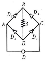 11. In the following circuit, explain the flow of current through resistor $R$. Can we use the circuit to convert $AC$ to $DC$ ? Explain.