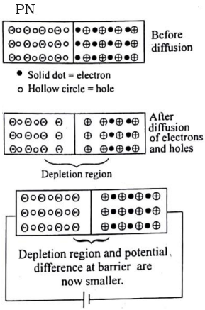 If we join a piece of $n$-type to a piece of $p$-type material by appropriate method, then we obtain $p$ - $n$ junction diode. It is clear that $p$-type has more hole concentration but less concentration of electrons than $n$-type semiconductor.