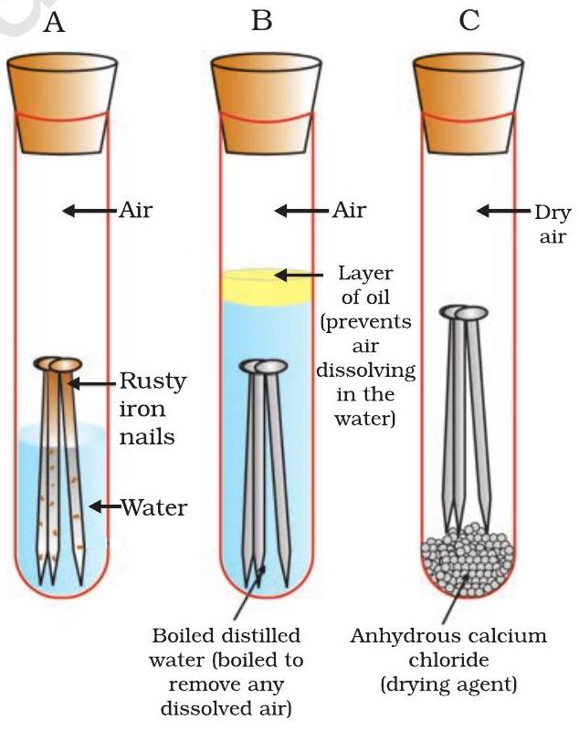(ii) Galvanisation: An iron article is coated with a layer of zinc metal, which prevents the iron to come in contact with oxygen and moisture. Hence, rusting is prevented.