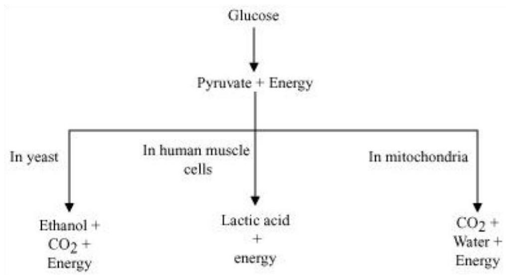 | 4.It always releases $CO_2$ and $H_2O$. | 4.End products vary. | ||