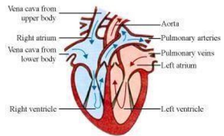 Flow of blood in the human heart